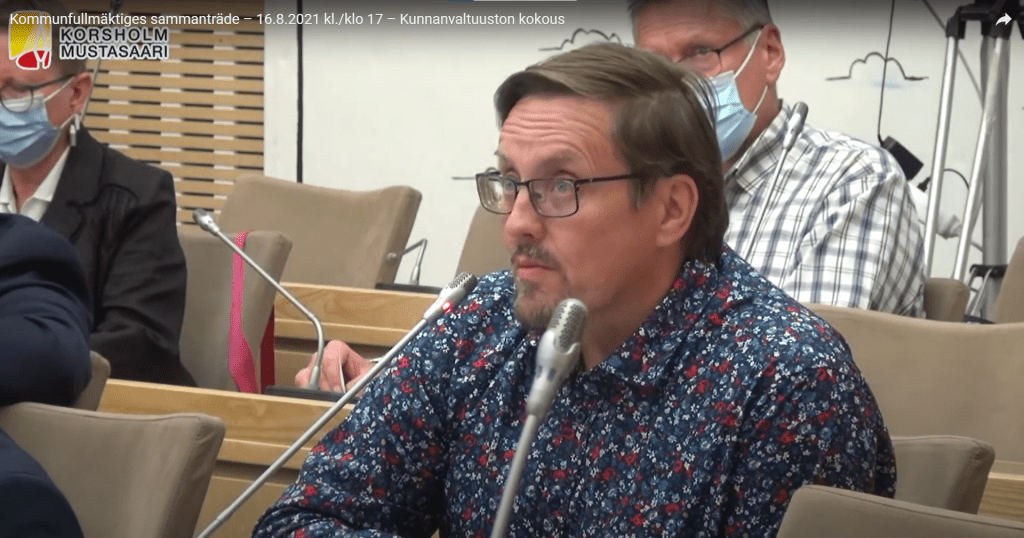 Bild från Malax-Tv:s utsändning från fullmäktigemötet i Korsholm 16.8.2021.