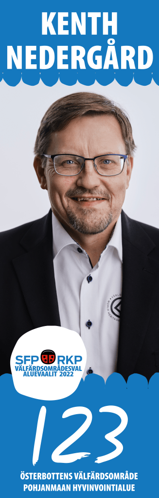 Den 1 januari 2023 får vi ett nytt Österbotten – ett Österbotten som på bästa möjliga sätt ska ta hand om och sköta våra yngsta och äldsta och även där emellan när vi blir sjuka och behöver omvårdnad. Jag är en av de kandidater, som är beredd att jobba för att vi alla ska få den bästa möjliga omvårdnaden i framtiden. Vårt gemensamma mål ska vara en högklassig och lättillgänglig vård med människan i centrum för alla oberoende av hemort.